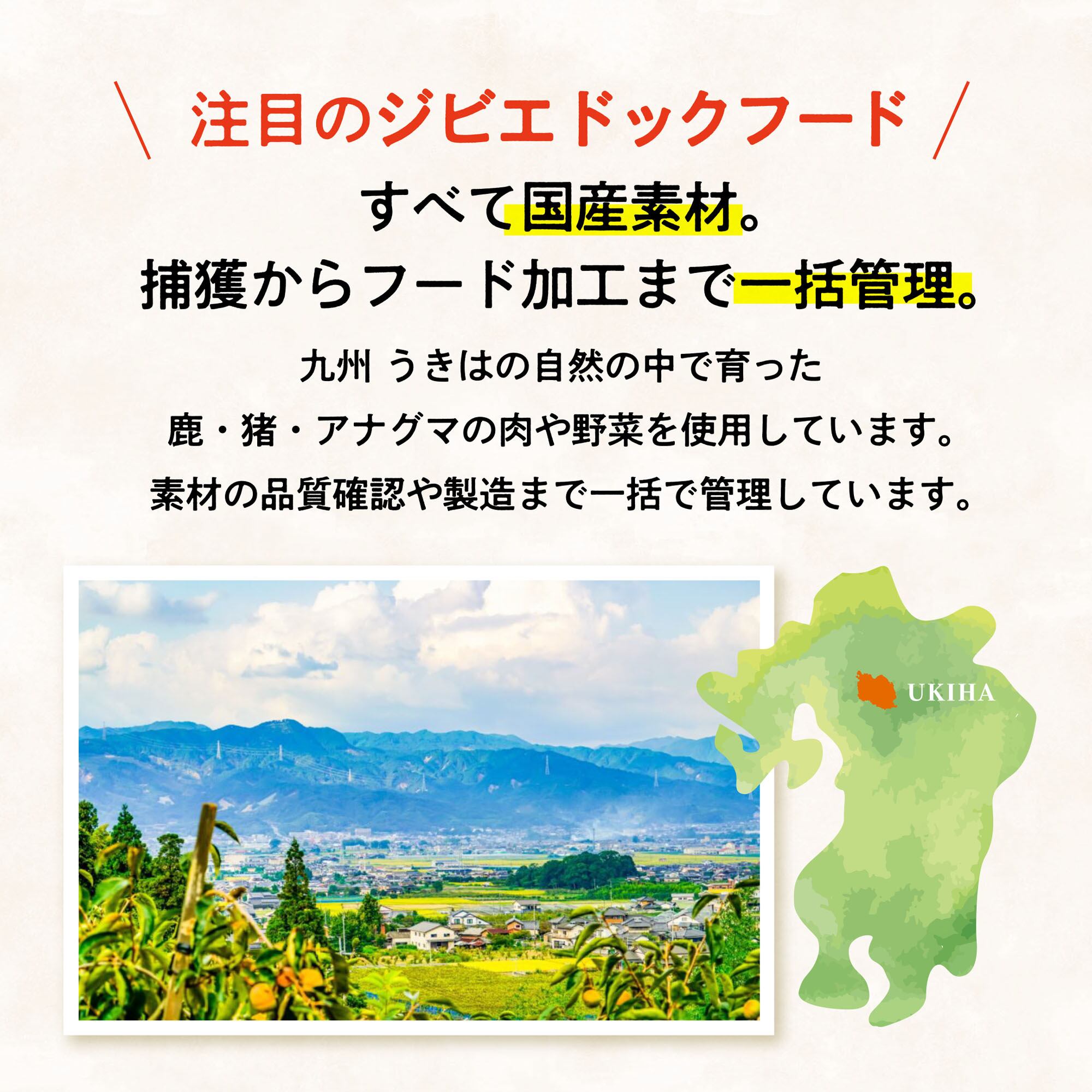 ウキナナSHOPがお届けするジビエ肉は、福岡県の山地やうきは周辺で捕獲したものをお届けしておりますが、猪や鹿などは天然の動物ですので県をまたいで県境の大分県で捕獲される場合もございます。予めご了承ください。